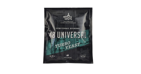 Active dry alcoholic turbo yeast BragMan "48 Universal TURBO" (135 g) with a full range of macro and micro nutrient elements, ideal for fermentation of fruit and sugar base of any raw material (sugar glucose syrup). Turbo yeast BragMan "48 ..