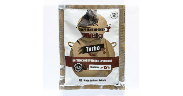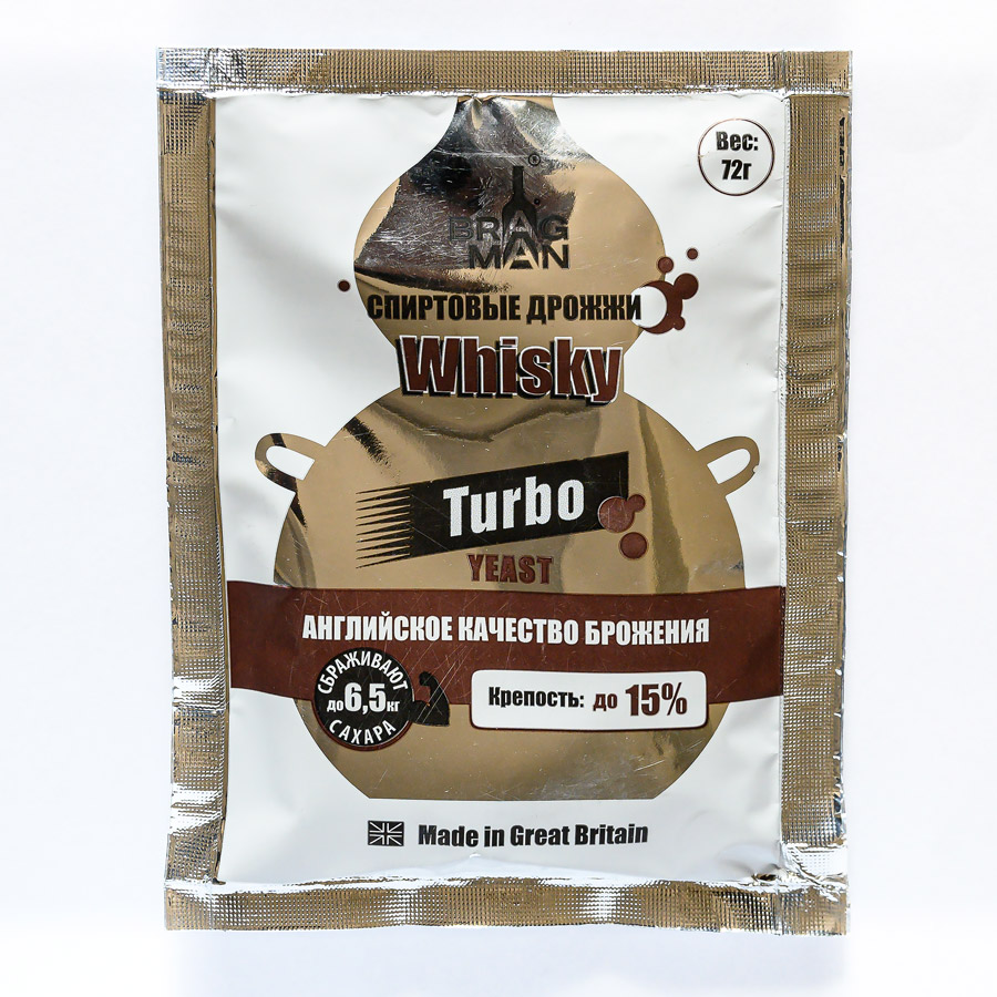 Active dry alcoholic turbo yeast Turbo yeast alcohol BragMan "Whisky TURBO" (72 gr) with a full range of macro and micro nutrients, ideal for fermentation of fruit and sugar base of any raw material (sugar glucose syrup). Turbo yeast alcohol Bra..