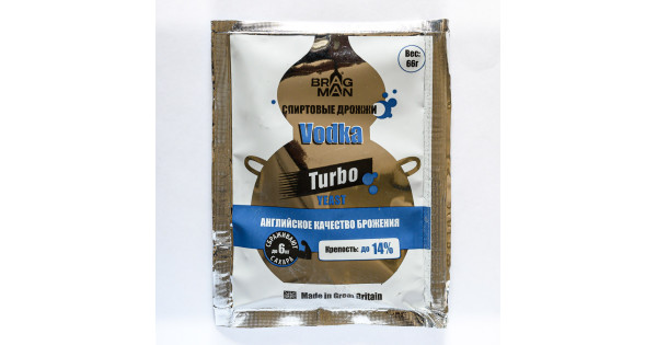 Active dry alcoholic turbo yeast Turbo yeast alcohol BragMan "Vodka TURBO" (66 gr) with a full range of macro and micro nutrients, ideal for fermentation of fruit and sugar base of any raw material (sugar glucose syrup). Turbo yeast alcohol Brag..