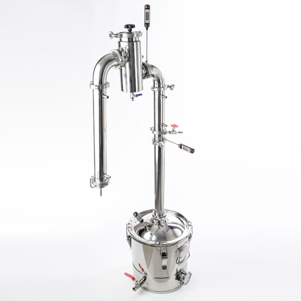 - If you wish, you can add any natural flavors to the gin basket and thus get a distillate with the taste and aroma of herbs, berries, fruits, etc. Using a special tap, you can at any time drain the fusel oils that accumulate inside the gin-basket.
